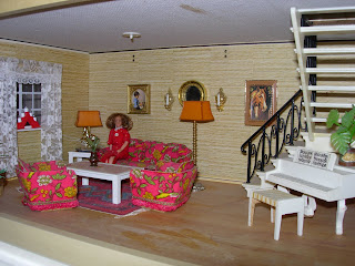 Men vilken FIN bild!! Vilken nostalgi. jag hade också en sån där soffa i mitt dockskåp! men ingen adventstake. Och du har el i ditt skåp! det hade inte jag, buhu!!